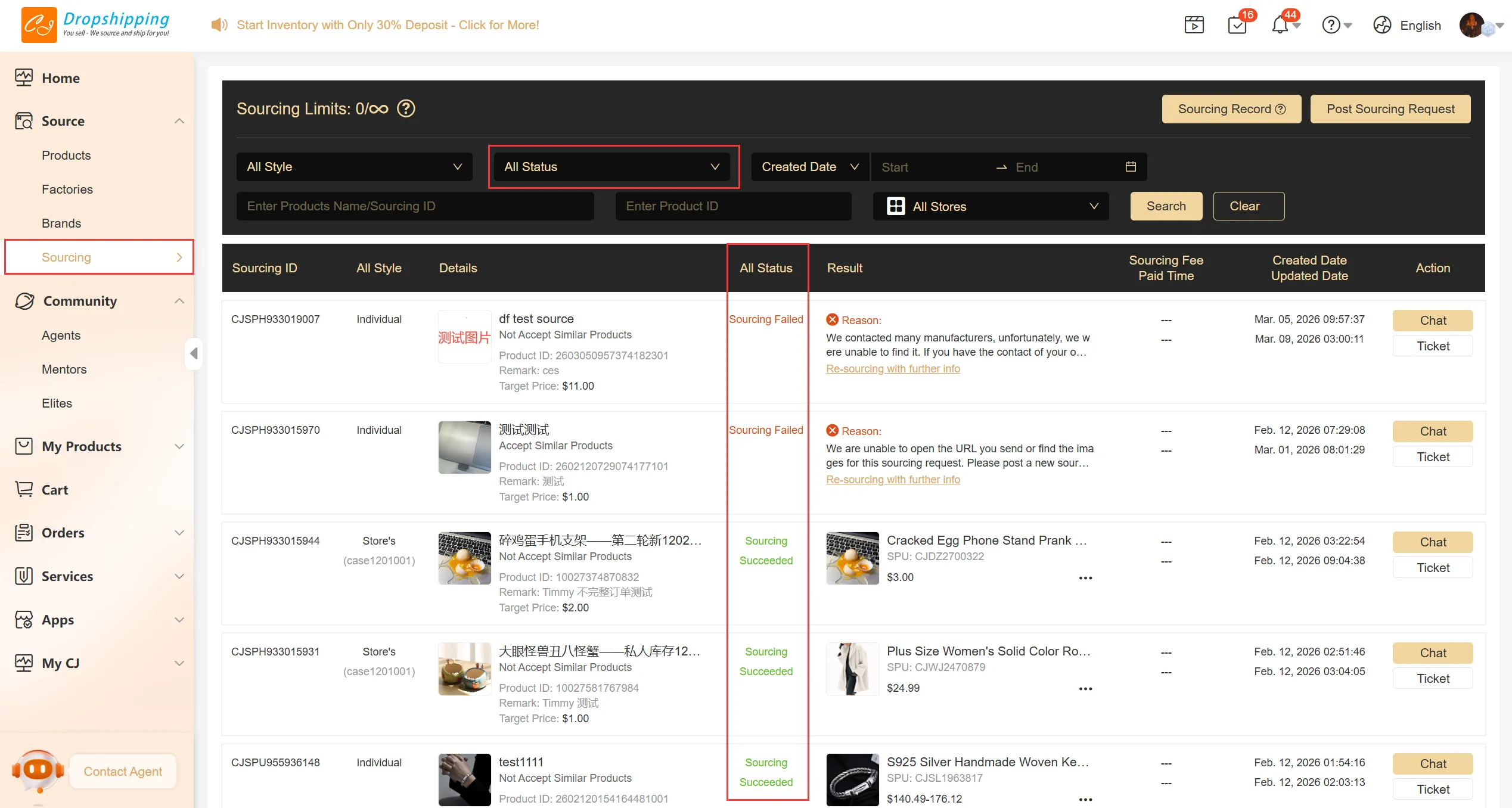 3.We offer a function that can automatically generate sourcing requests for your disconnected products from your Invalid Orders to help you speed up your fulfillment.