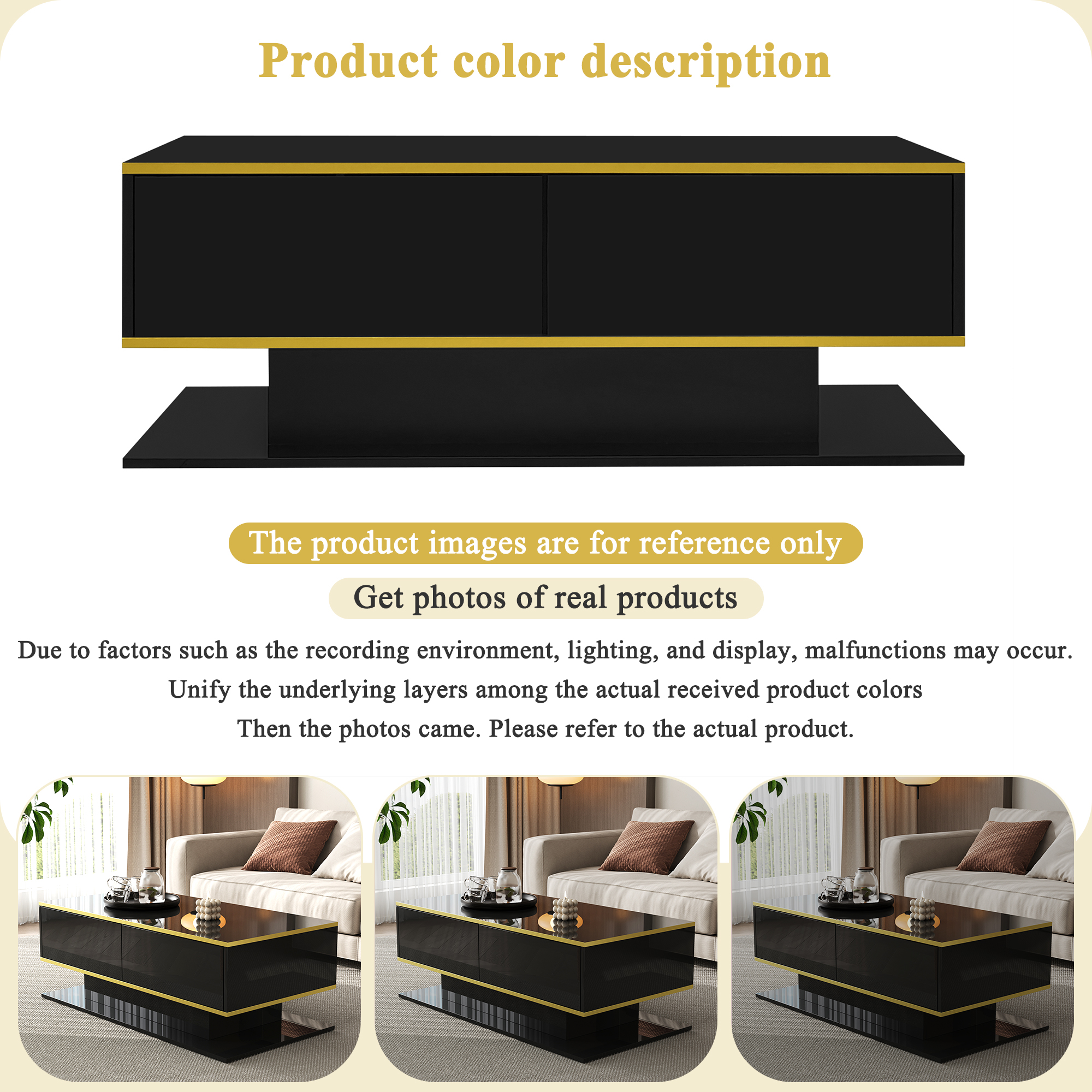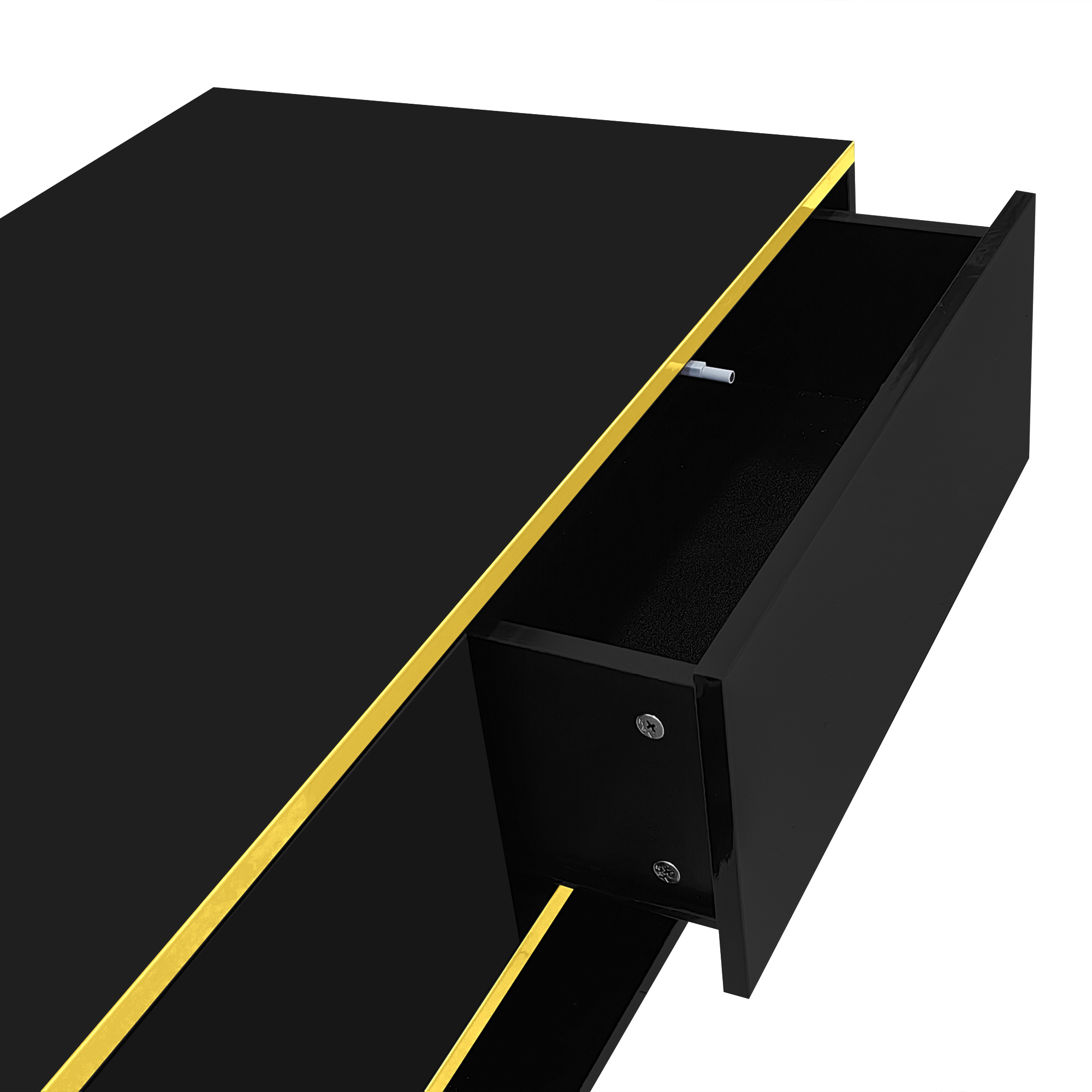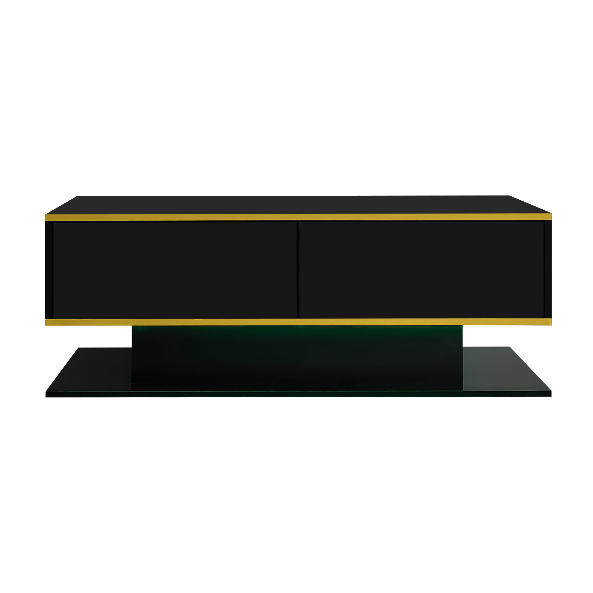 Product Name:Modern LED Coffee Table with High-Gloss Finish, 100 cm Length, Gold Accents, 3 Drawers & USB LED Light Strip (Adapter/Power Bank Required)