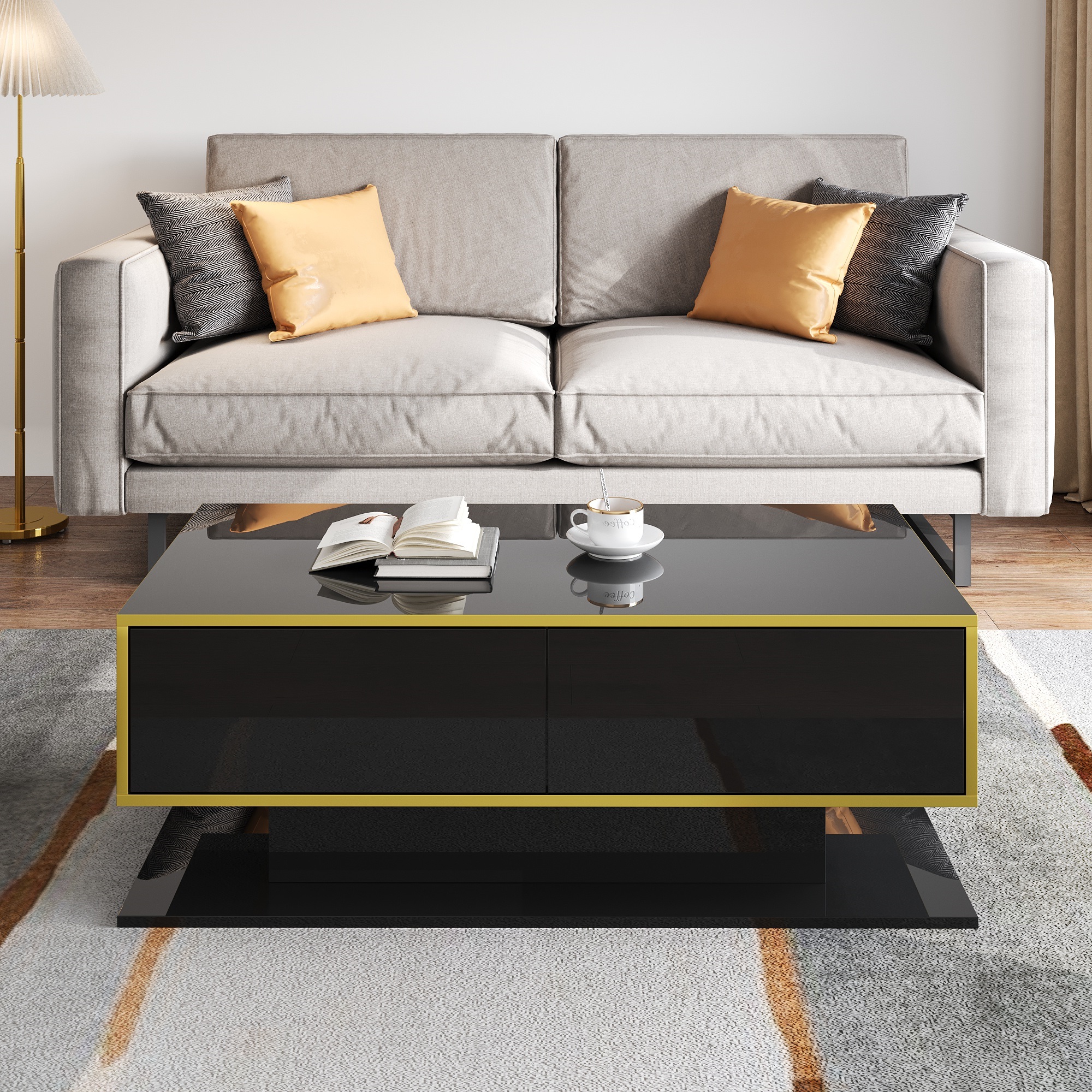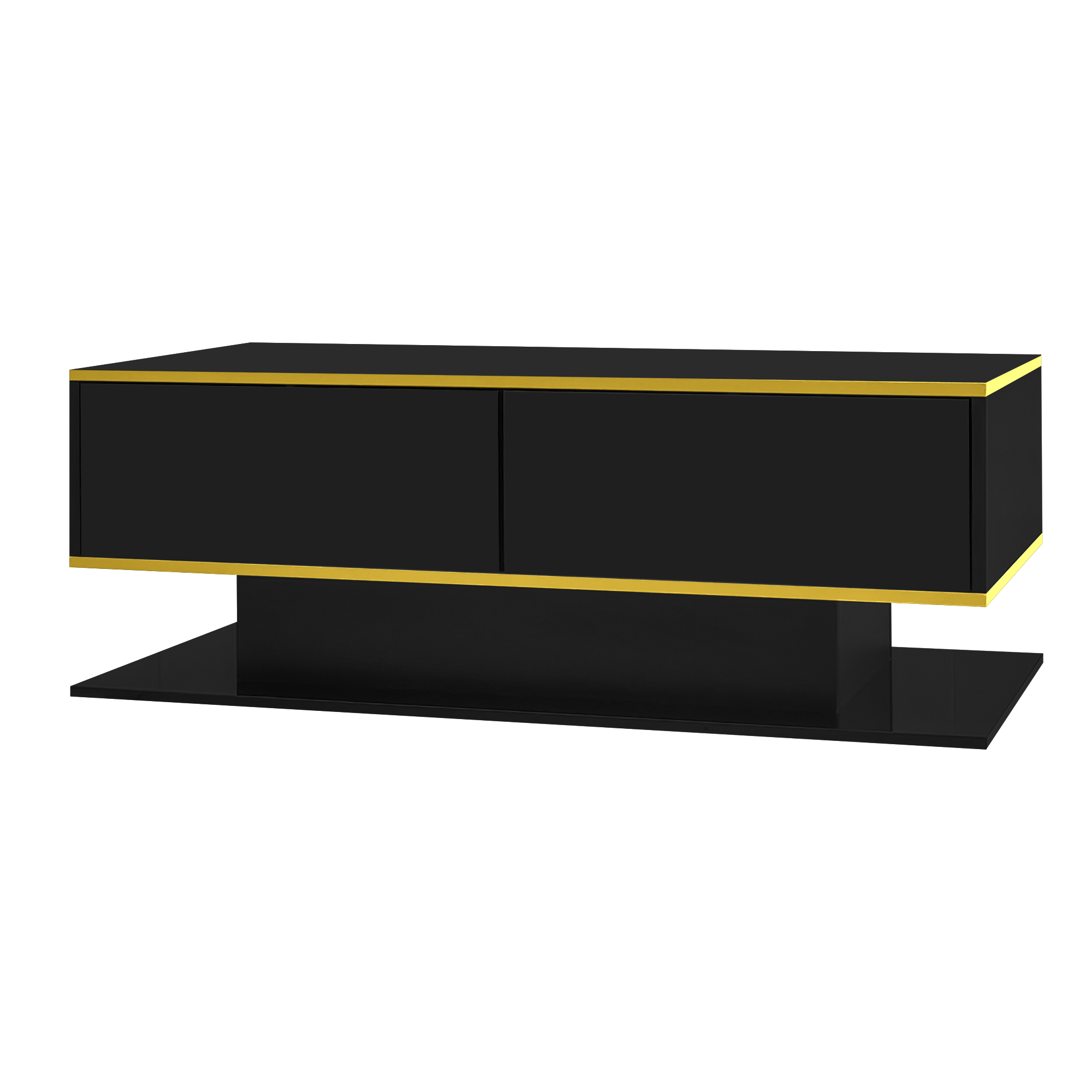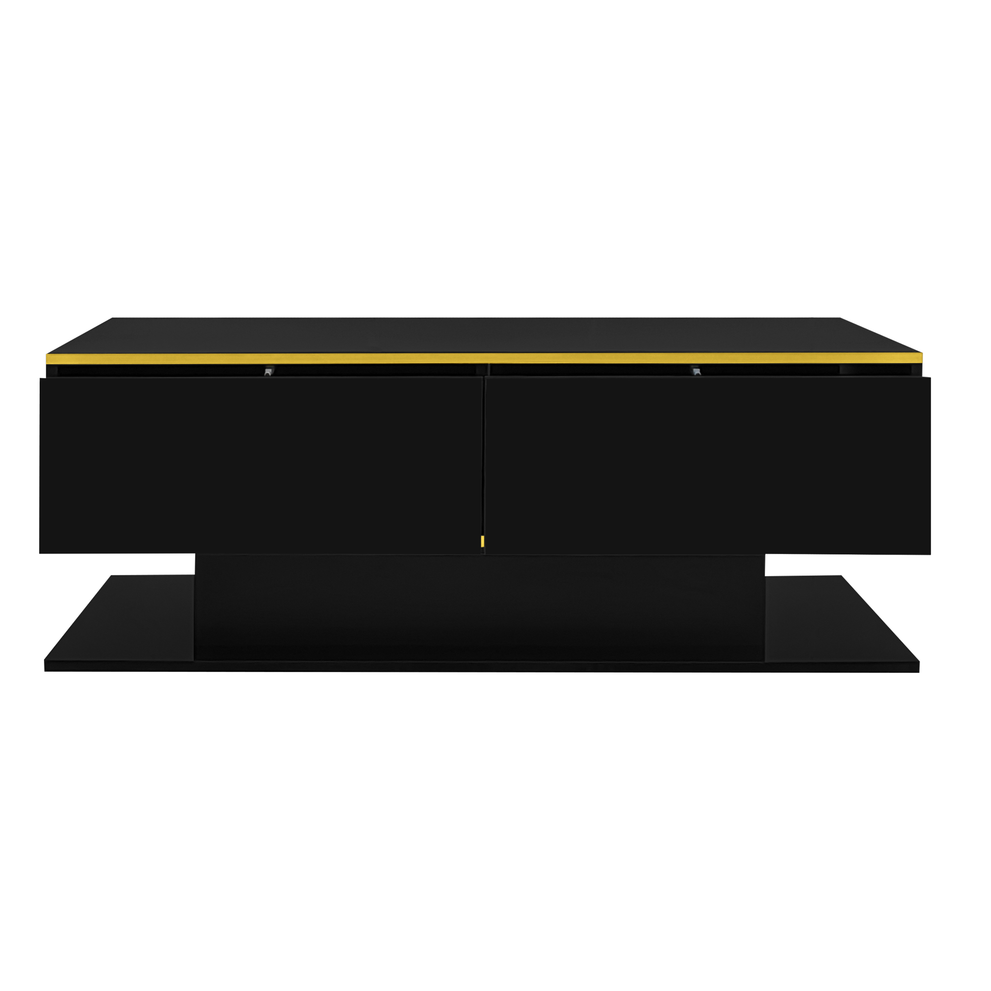 Product Name:Modern LED Coffee Table with High-Gloss Finish, 100 cm Length, Gold Accents, 3 Drawers & USB LED Light Strip (Adapter/Power Bank Required)
