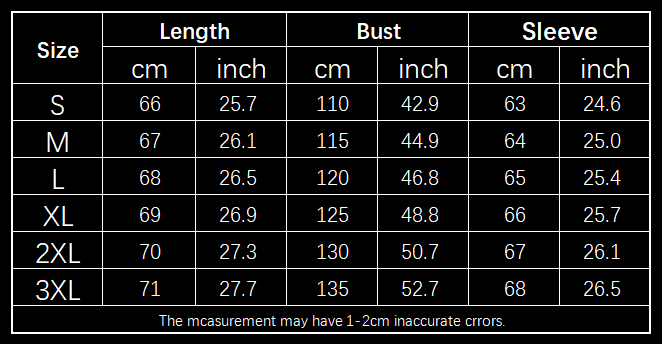 Sizes: S, M, L, XL, XXL, XXXL